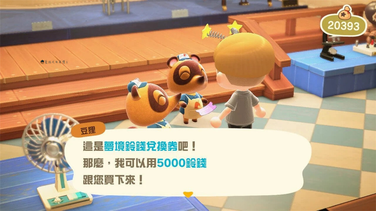 值得注意的是:我們每天都能上傳一次夢境,只要你有更新或上傳,那麼第二天就會收到一封由夢美寄來的信,信裡面附帶了一件禮物,那就是「夢境鈴錢兌換券」!要使用兌換券的話,我們需要前往島嶼上的「Nook 商店」,與豆狸店員對話並選擇「我要賣東西」,就能將這張兌換券賣掉了!