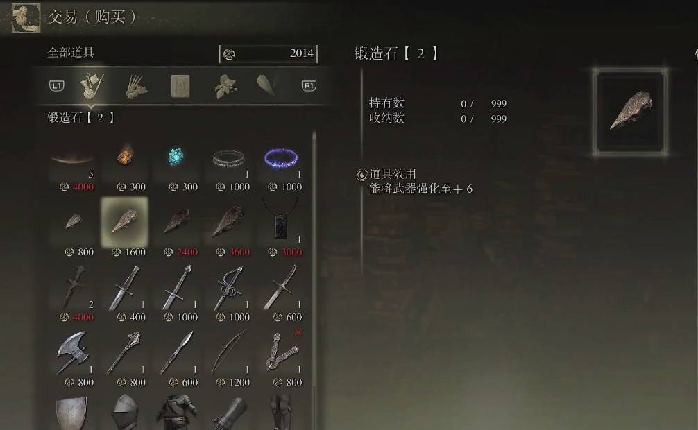 首頁 艾爾登法環 問答 艾爾登法環鍛造石怎麼買? 2022-07-01 1.首先是1,2級鍛造石,可以在寧姆格福坑道中撿到,如果想要買到鍛造石,可以打開地圖,傳送到大賜福,然後就能看到個孿生老嫗2.點擊孿生老嫗,和她對話,點擊購買,就會出現如下圖所示界面,就能看到鍛造石了,可以點擊購買