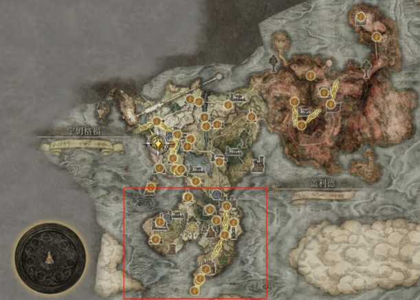 啜泣半島位置在主路上,很好找的,在地圖的紅框里。啜泣半島是一個資源非常豐富的島嶼,啜泣半島的怪物強度都很低,適合全部開荒一下,