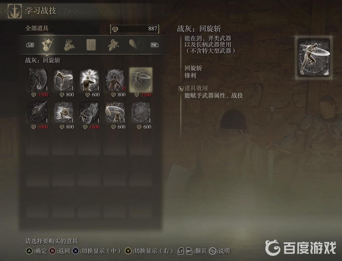 6、對話之後,可學習戰技,裡面就有戰灰:迴旋斬。