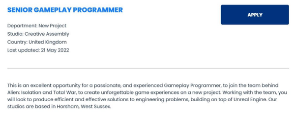 據悉,本次開發新遊戲也是Creative Assembly第一次使用虛幻5引擎,此前Creative Assembly方面曾宣布《異形:隔離》開發團隊成員負責製作科幻FPS遊戲,目前尚不清楚CA的虛幻5新作是否就是之前那款FPS遊戲。