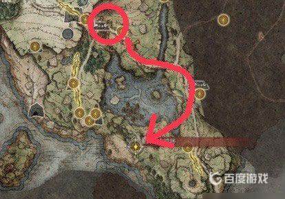 艾爾登法環存錢方法:1、首先大家從開場那三個點走出來之後,往上探索會拿到馬,也就是我圈起來的那個位置。拿到馬之後,沿著箭頭的路線衝過去,請無視路上任何怪,心中不要有任何畏懼