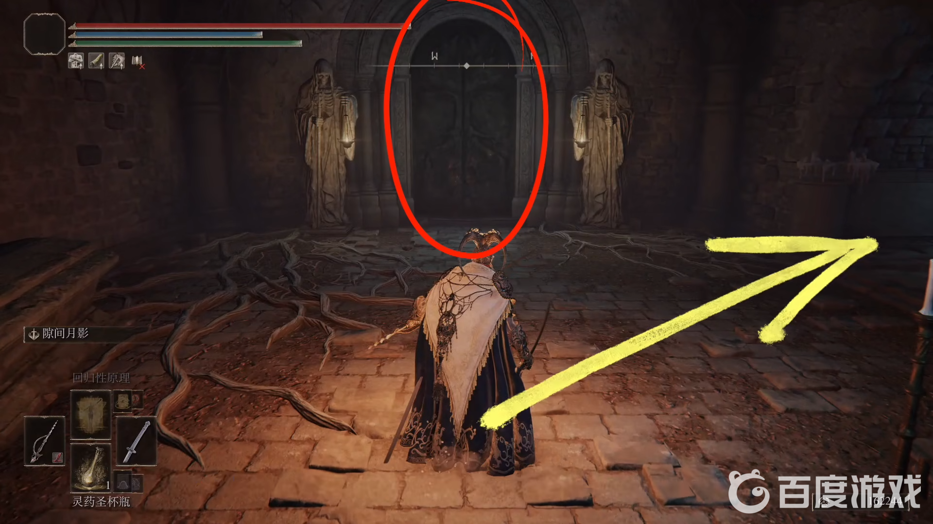 2、我們從賜福點向廈門走,前面是石門,BOSS戰的入口位置,我們要向右邊走,
