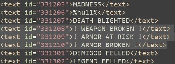 JesterPatches表示《艾爾登法環》的後台文件顯示,當玩家的武器和盔甲耐久度過低時,遊戲會出現「損壞」或「危險中」的警告信息。