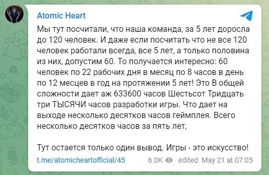 Mundfish工作室日前分享了一張《原子之心》的遊戲截圖,並表示《原子之心》的開發工作已經耗時五年,團隊規模也已經擴展到120人,遊戲總開發時間已經超過63萬小時。