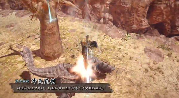 用翔蟲持長槍向上空突刺,隨後順勢朝正下方落下並突刺的招式。
