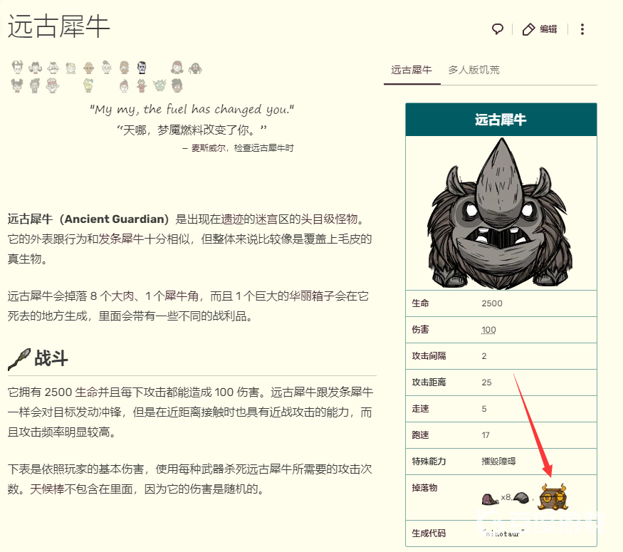 需要先在遺跡的迷宮區找到遠古犀牛並擊殺,遠古犀牛死後會爆出一個華麗的大箱子。