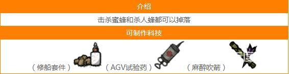 2、擊殺蜜蜂和殺人蜂都可以掉落蜂刺,蜂刺可用於製作修船套件、麻醉吹箭等。
