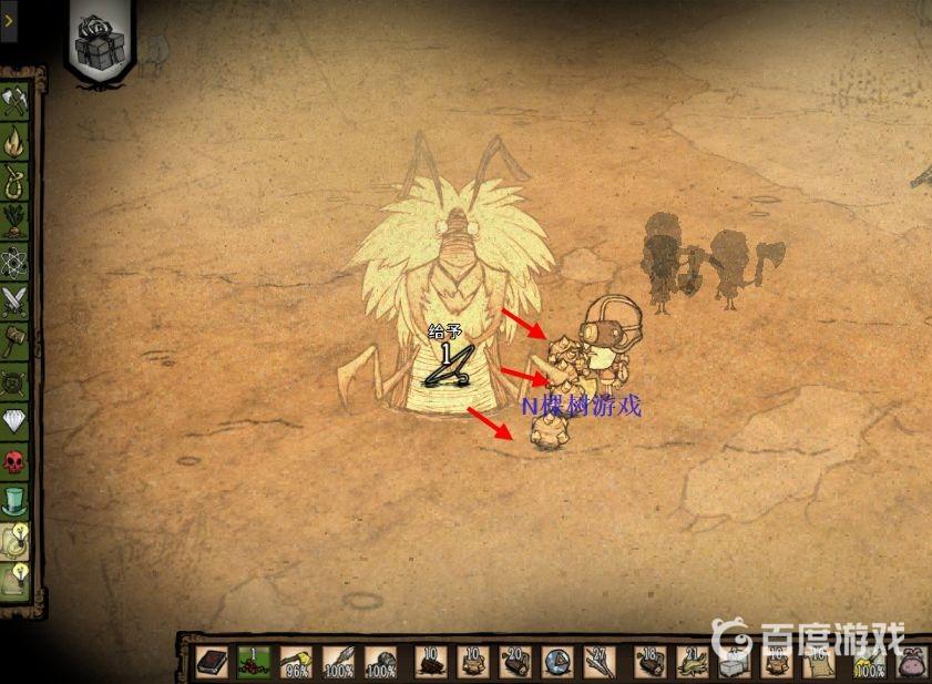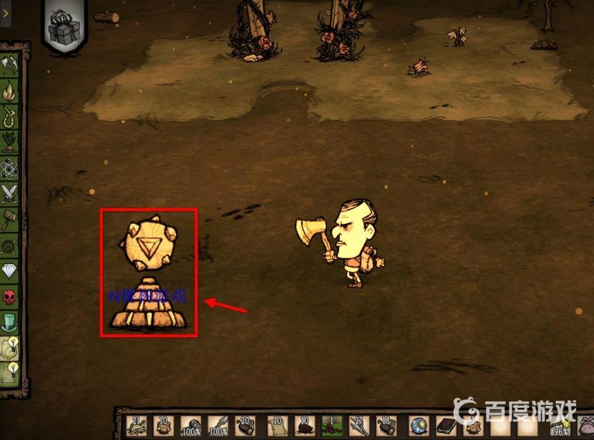 1、打開饑荒遊戲,想要製作強征傳送塔,最難獲得物資是沙之石,佩戴沙漠護目鏡,在沙漠附近找到蟻獅,將原本送豬王的玩具送給蟻獅,蟻獅會回贈沙之石。