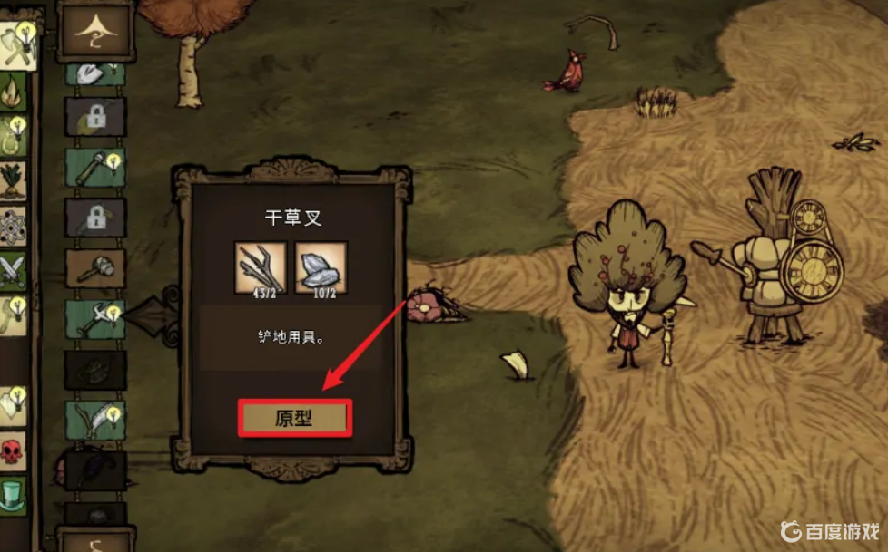 第二種情況是不想要耕地,想要將地皮恢復為原始狀態。此時需要使用科學機器打開工具製作欄,點擊製作乾草叉。