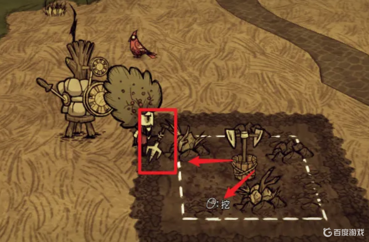 裝備乾草叉,對准耕地按滑鼠右鍵挖掘。