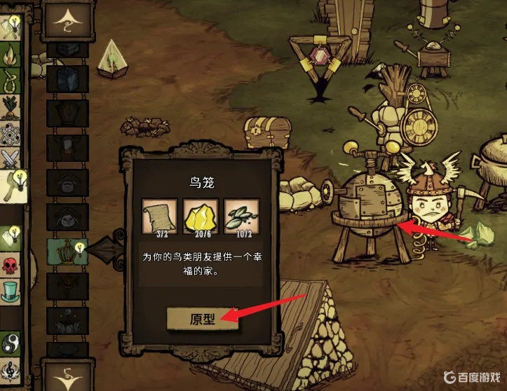 使用二本科技,在建築製作欄中將金塊、種子和莎紙合成鳥籠即可。
