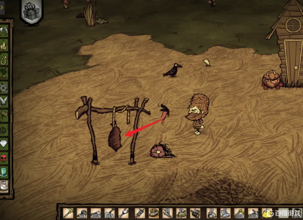 3.拿起大肉右擊曬肉架,將肉放上去風干。