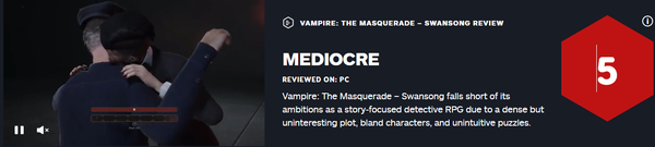 「《吸血鬼:避世-絕唱》一直被認為是一款出色的偵探RPG遊戲,如果不是因為它不知疲倦地一意孤行,它可能已經成功了。它的背景是有趣的,但它的主角和反派是乏味的,因此,這個不溫不火的故事需要很長時間才能發揮其最大潛力。