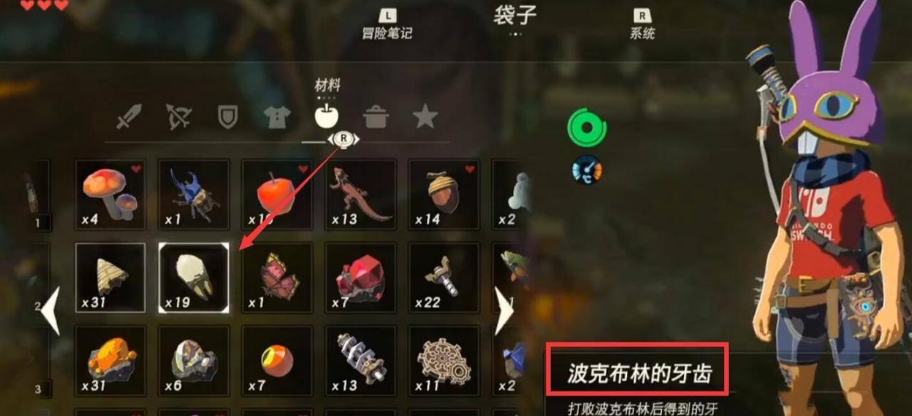 3、打開材料界面後,我們選中波克布林的牙齒,然後按下選擇