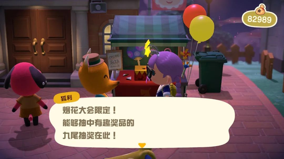 在煙花大會期間和狐利對話可以看到九尾抽獎的介紹,但想要抽獎就需要去觸碰狐利身邊攤位的抽獎箱。