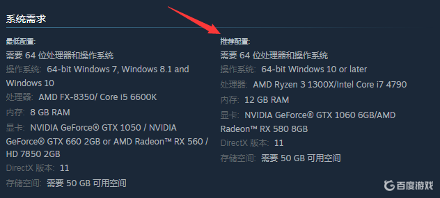 從遊戲官方提供的推薦配置要求可以看到,該遊戲需要win10 64位以上的處理器和操作系統、處理器需要達到 AMD Ryzen 3 1300X或Intel Core i7 4790、顯卡達到NVIDIA GeForceGTX 1060 6GB或AMD Radeon RX 580 8GB以及12GB RAM的運行內存和50GB的存儲空間,這個配置要求並不算高,大多數主流電腦都可以滿足。