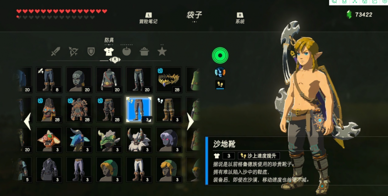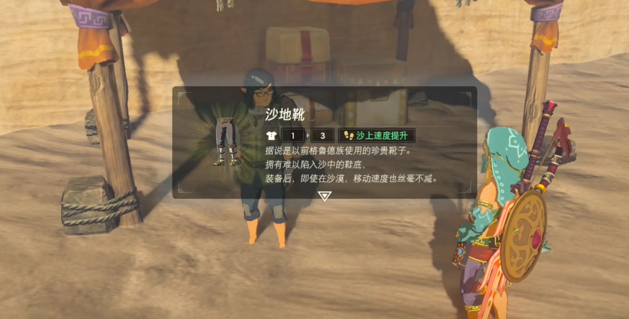 大家好,在本作《塞爾達傳說:荒野之息》中,存在著大量的沙漠地區,而在沙漠中行走會極大的降低移動速度。沙地靴是游戲中比較實用的一件裝備,因為有了它,即使在沙地也可以如履平地,本期內容就給大家介紹如何獲得沙地靴的方法和玩法詳解。