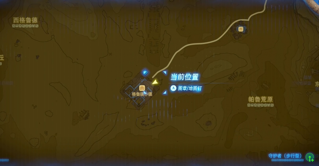 先看下地圖位置,在格魯德小鎮外右手邊。在林克身著淑女套裝的情況下,與格魯德小鎮外不斷跑步的男子伯騰薩對話。