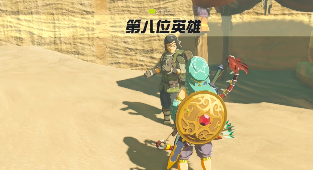 接到名為「第八位英雄」的支線任務,他會委託林克去拍傳說中的第8 位英雄的照片,並以沙地靴作為獎勵。