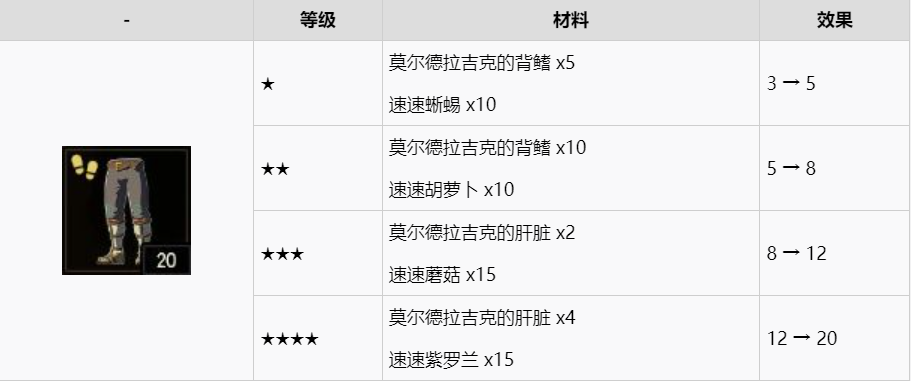 沙地靴的升級材料主要是莫爾德拉吉克的相關材料,果然是沙漠地帶的裝備,連升級材料都是沙漠怪物掉落的。