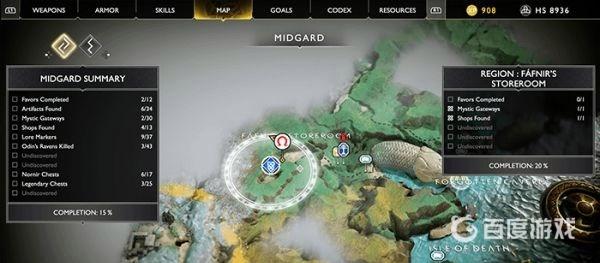 1、在支線任務「法夫納的寶藏」中,位置如下圖所示,來到法夫納的儲物間,經過商店後來到瀑布附近就能剛找到寶箱。
