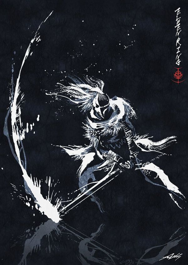 日前國外畫師ADDY分享了一組水墨畫風的《艾爾登法環》同人作品,風格獨樹一幟,歡迎玩家欣賞。