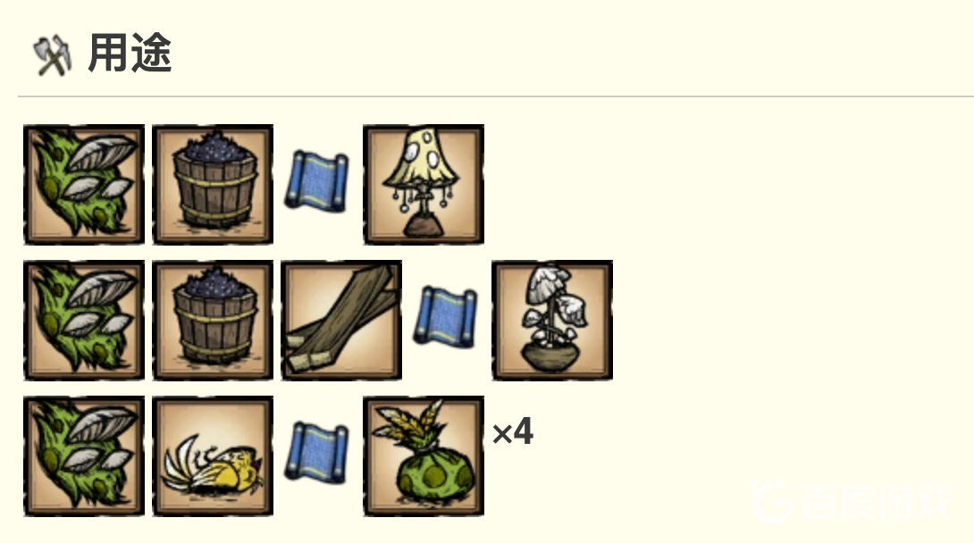 2、蘑菇皮屬於基本製作材料之一,可以用來合成蕈燈、輝光燈、睡眠麻袋等物品。
