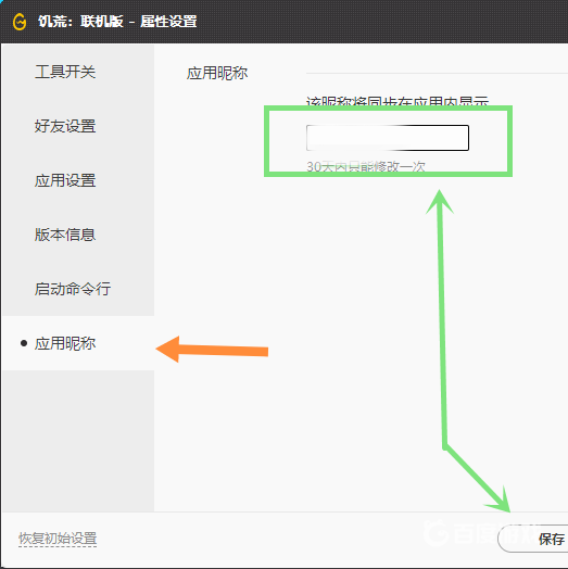 玩家首先進入饑荒遊戲主頁,點擊左下角屬性設置,找到應用昵稱點擊,輸入新昵稱後點擊保存即可完成饑荒聯機版修改名字操作,如下圖: