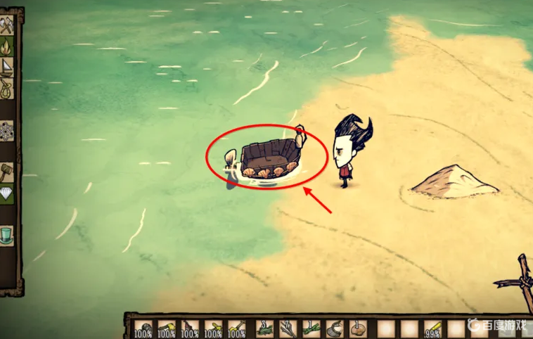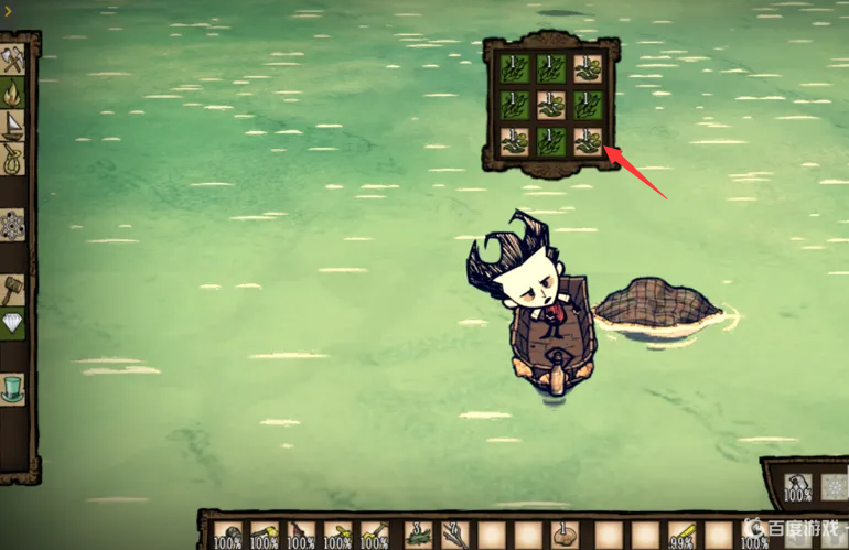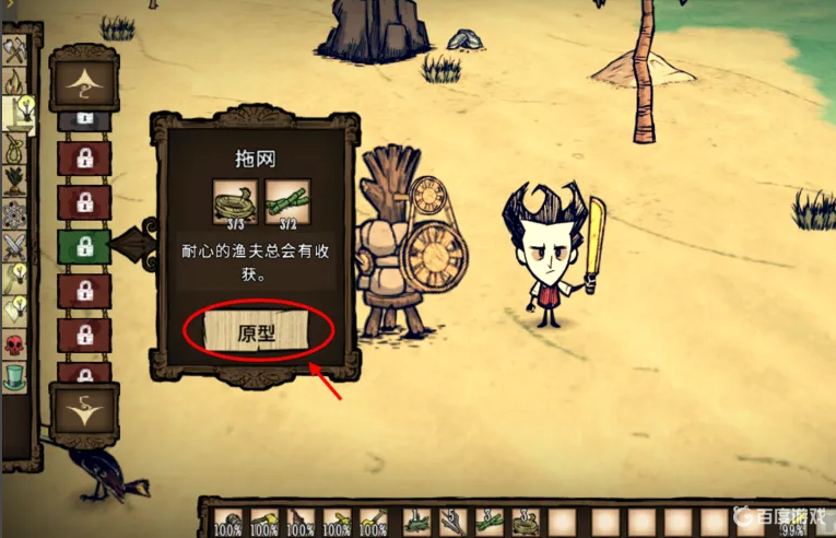 1、解鎖一本科技後,消耗3個繩子和3個竹子製作拖網,如下圖所示。