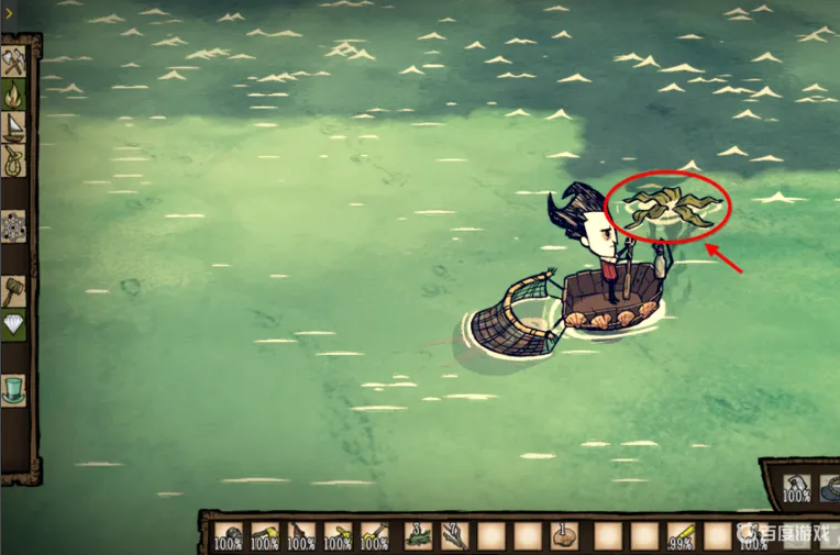 3、最後駕駛有拖網的船從海帶上方經過,打開拖網,即可獲得海帶根,海帶根可以用來種植海帶。