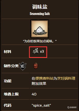 3、在使用廚師沃利角色時,可以使用便攜研磨器消耗鹽晶製作調味鹽,調味鹽可以為便攜香料站中的料理調味,製作出來的料理名字前會帶有「鹹的」修飾詞,玩家食用帶有「鹹的」修飾的料理後恢復的血量額外增加25%。