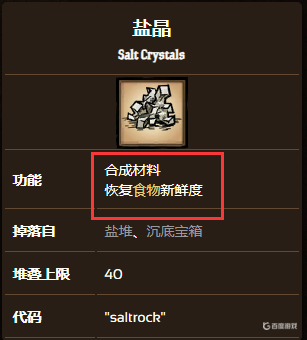 1、鹽晶通過開採鹽堆或錘開沉底寶箱獲取,鹽晶可以對食物恢復50%的新鮮度。
