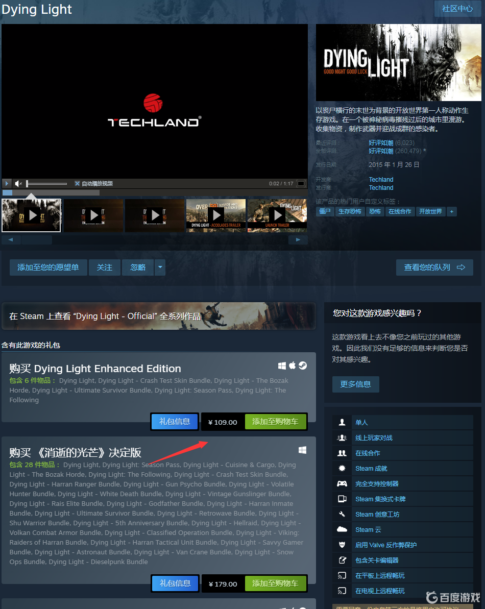 1、首先在steam商城搜索該遊戲(dying light)後點擊進入。