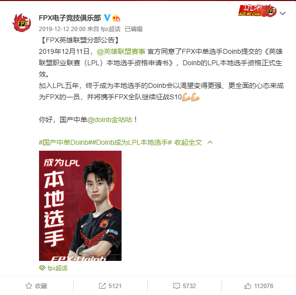 8月9日是LPL夏季賽常規賽的收官日,FPX的ADC選手林煒翔(ID:LWX)因突發急性扁桃體炎無法上場,最終上單選手Khan臨時上場,擔任ADC之位。有玩家疑問FPX為什麼能上三個韓援?其實早在去年,FPX的Doinb選手就已經成為LPL的「本地選手」,不佔用外援名額,所以Khan上場是沒有問題的,這次也是突發狀況,FPX才被迫做出這樣的選擇。