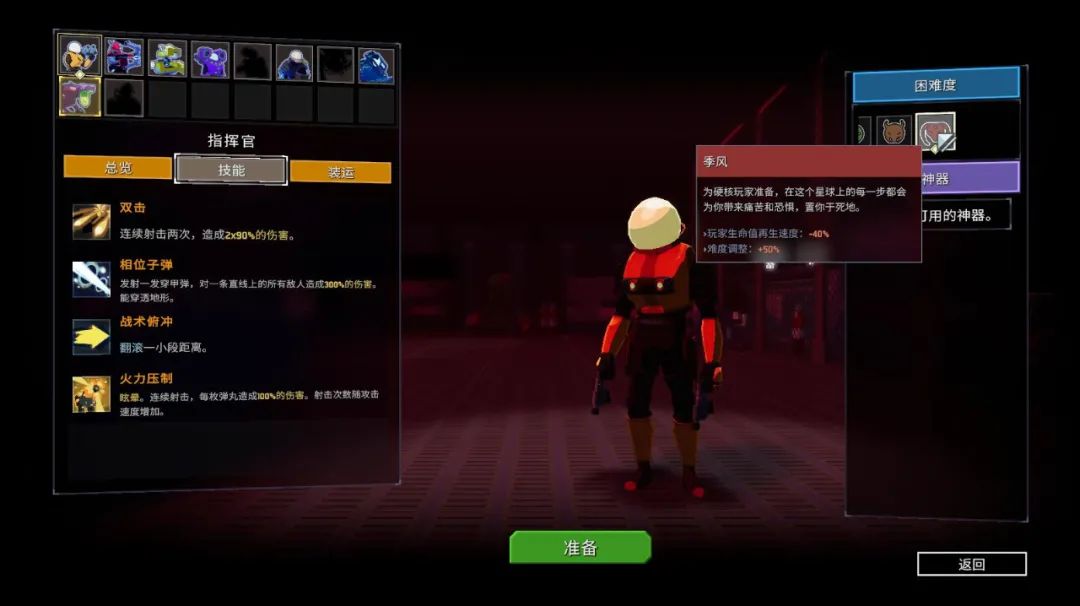 遊戲一共有細雨、暴雨和季風三種難度可選,在每種難度之下,又會隨著時間不斷增加難度,通關的時間越長,也意味著遊戲越難通關。玩家所需要做的,就是在難度提升之前,盡量增加自己的強度。