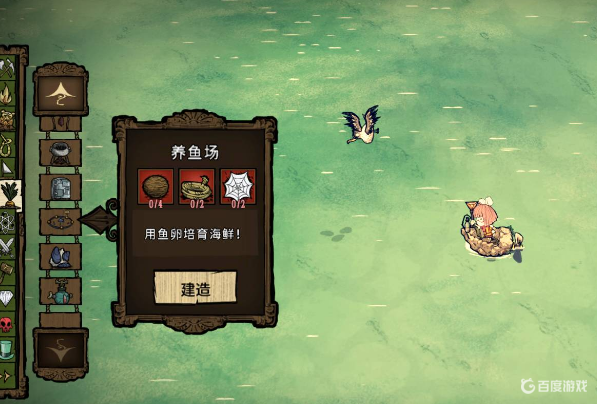 第二種方法是建造養魚場,在食物類中,使用科學儀器製作樣板,合成需要2個蜘蛛絲、2個繩索和 4個椰子。