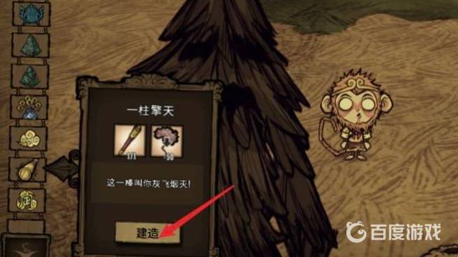 在神話欄用金箍棒和50點腦子來建造一柱擎天具體信息如下圖所示。