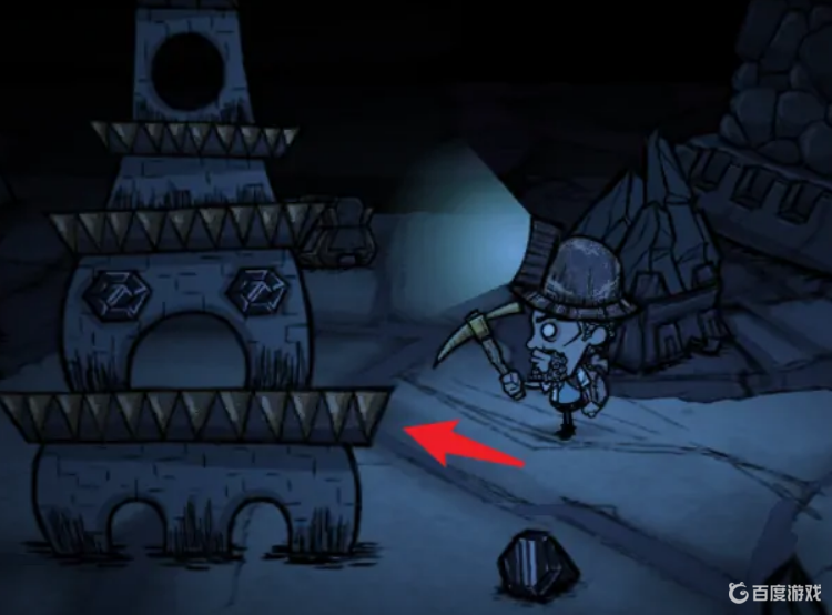 在洞穴中找到銩礦雕像,用鶴嘴鋤開採得到銩礦石。