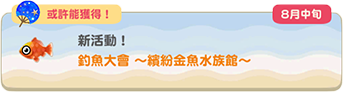 《動物森友會:口袋露營廣場》8月已經來到了中旬,而中旬活動釣魚大會 ~繽紛金魚水族館~也正式開始。