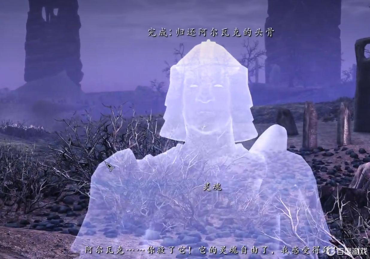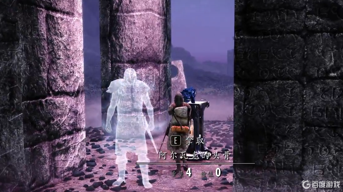 2、由埋骨地出發,向東走到一個紫色祭壇,幹掉周圍敵人就能拿到阿瓦克的頭骨。