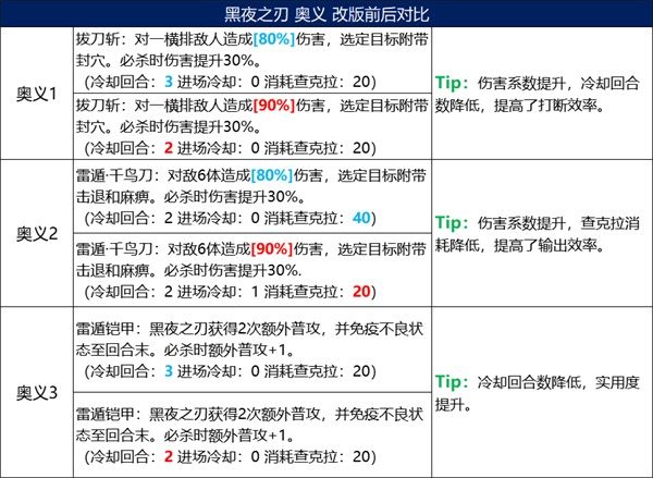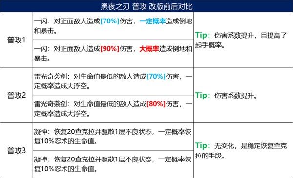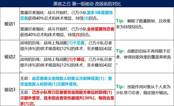 1、黑夜之刃的被動分別能夠強化雷屬性忍者的忍體、增加雷屬性忍者的額外普攻;