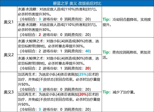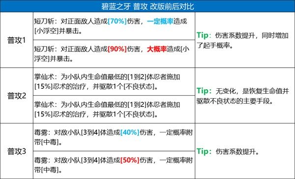1、以下每個技能的第一行為改版前,第二行為改版後;