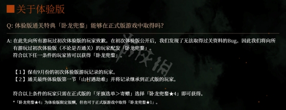 符合以上條件的玩家只需在正式版的「牙旗選單>寄贈」選擇卧龍兜鍪★4」即可獲得。