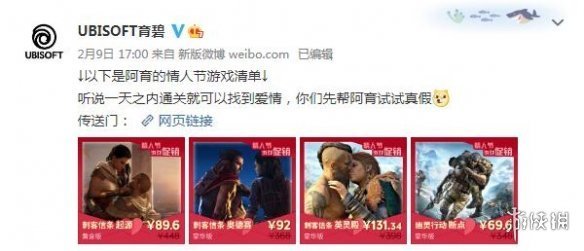 馬上就是2月14日情人節了,貼心的育碧也開啟情人節遊戲特賣,低至2折!順便分享了一波情人節遊戲清單,聽說一天之內通關就可以找到愛情(滑稽表情)。