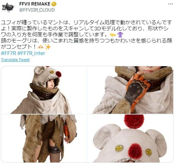 官方表示,尤菲身穿斗篷是實時處理的動畫。經過3D掃描與建模後,通過手工多次調整形狀與褶皺,才呈現出逼真效果。而莫古力頭套是基於「布料顯得陳舊,但看起來仍然很可愛」的理念設計出來的。