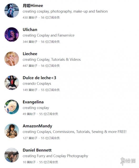 大家能看到,其中的Coser有高產有低產,在我們不知道他們作品質量的情況下,他們都有著大約50位的常駐訂閱會員。