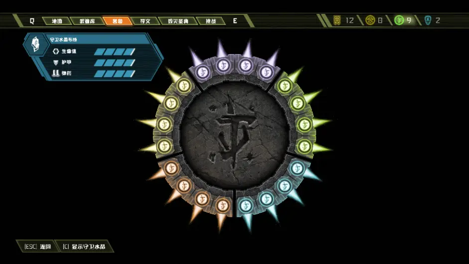 本作有著四套不同的升級系統,分別是武器升級、守衛水晶升級、套裝升級以及符文裝備,讓各種不同類型的玩家都可以點出自己想要走的方向。而為了達成這些升級,則需要做不少相關的收集和挑戰。完成任務交鋒可以獲得武器點數,完成任務挑戰可以獲得守衛電池,精通代幣和執政官裝甲點數則需要在地圖中仔細尋找。