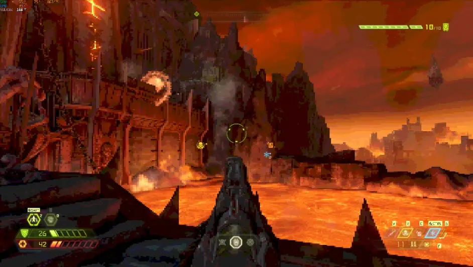 《毀滅戰士:永恆》的畫面表現十分優秀,比起前代提升了紋理細節,增加了更多的粒子特效,也在開發後期添加了光線追蹤和DLSS技術,讓人第一眼就被獨特的「地獄級」體驗吸引。同時遊戲也有相當良好的優化,在許多性能較差的電腦以及老款主機上也能提供非常流暢的體驗,說明ID Software的技術力依舊靠譜。而視覺風格則會在科幻與地獄中無縫切換,讓人印象深刻。