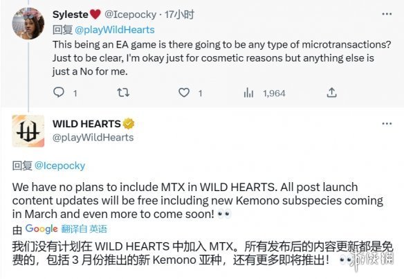 EA和光榮特庫摩聯合推出的狩獵共斗遊戲《狂野之心》即將上市,其開發團隊在推特上進行了玩家問答環節,開發團隊聲明《狂野之心》將不含微交易和付費DLC,所有後續更新的內容都是免費的。
